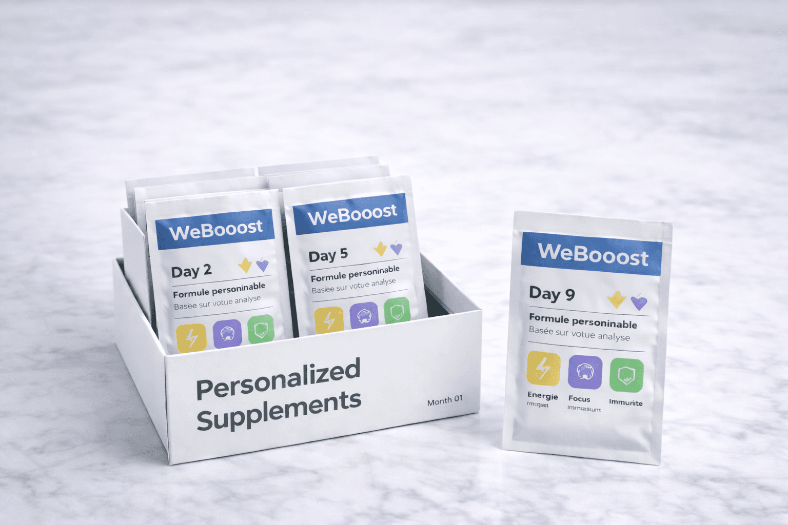 Beaucoup de personnes prennent déjà des compléments sans vraiment savoir s’ils sont adaptés à leurs besoins. WeBoost permet d’éviter les suppositions et le gaspillage en s’appuyant sur vos données biologiques, pour des recommandations plus pertinentes et ciblées.